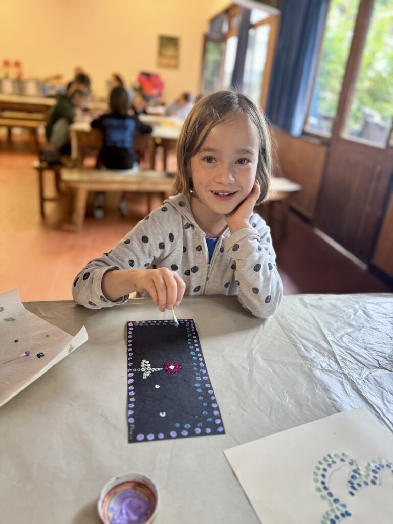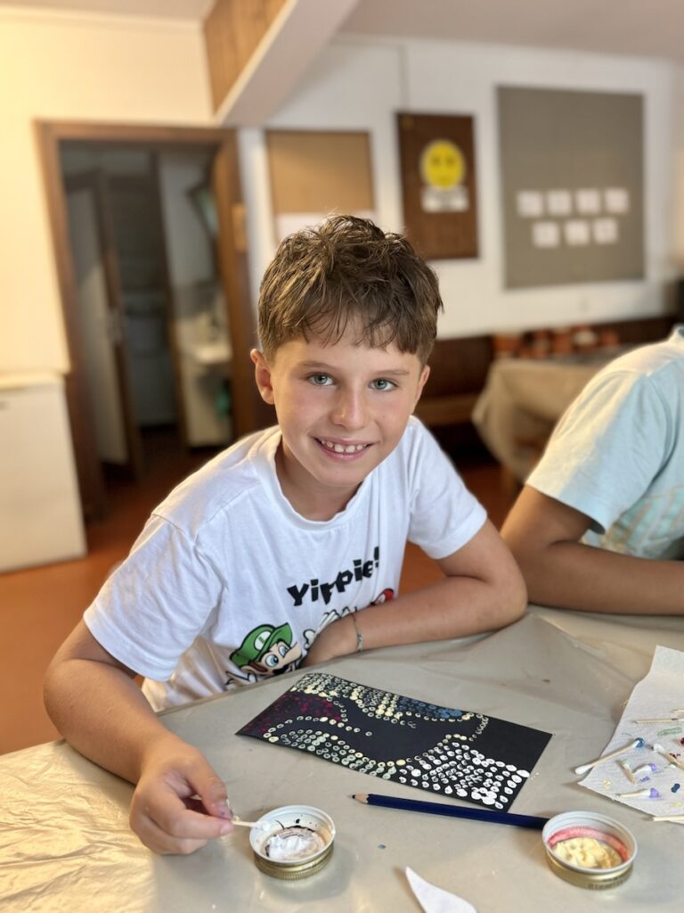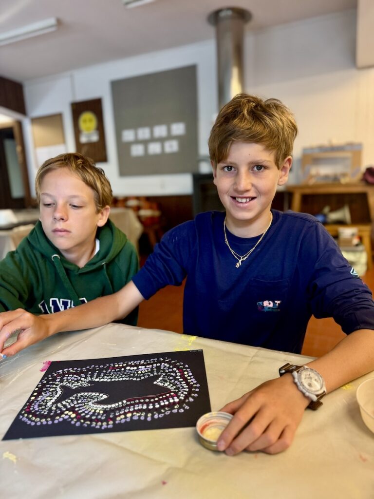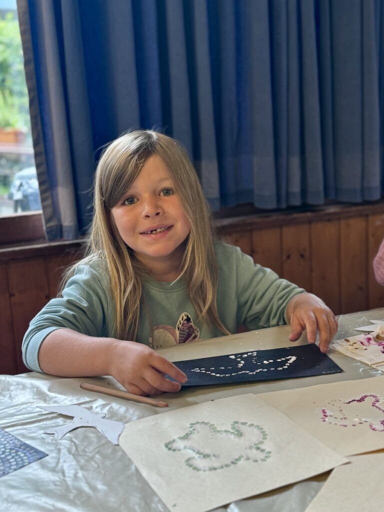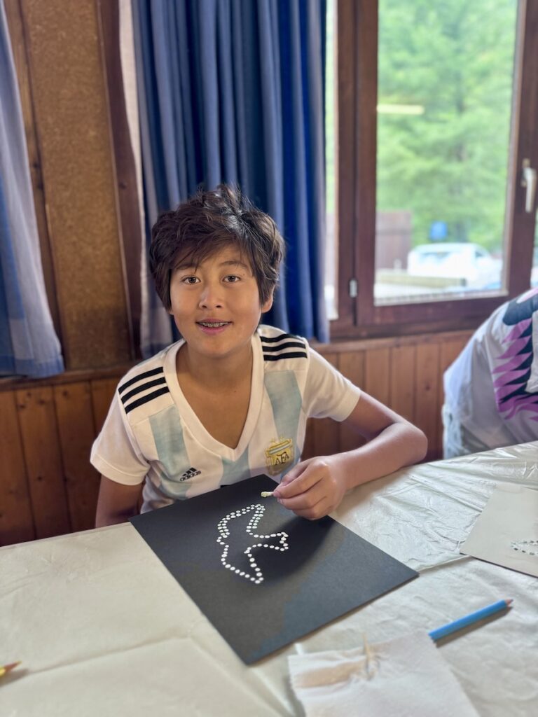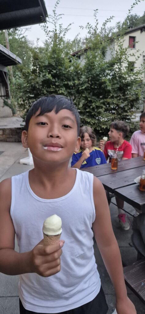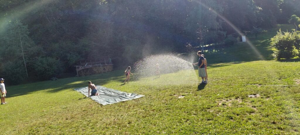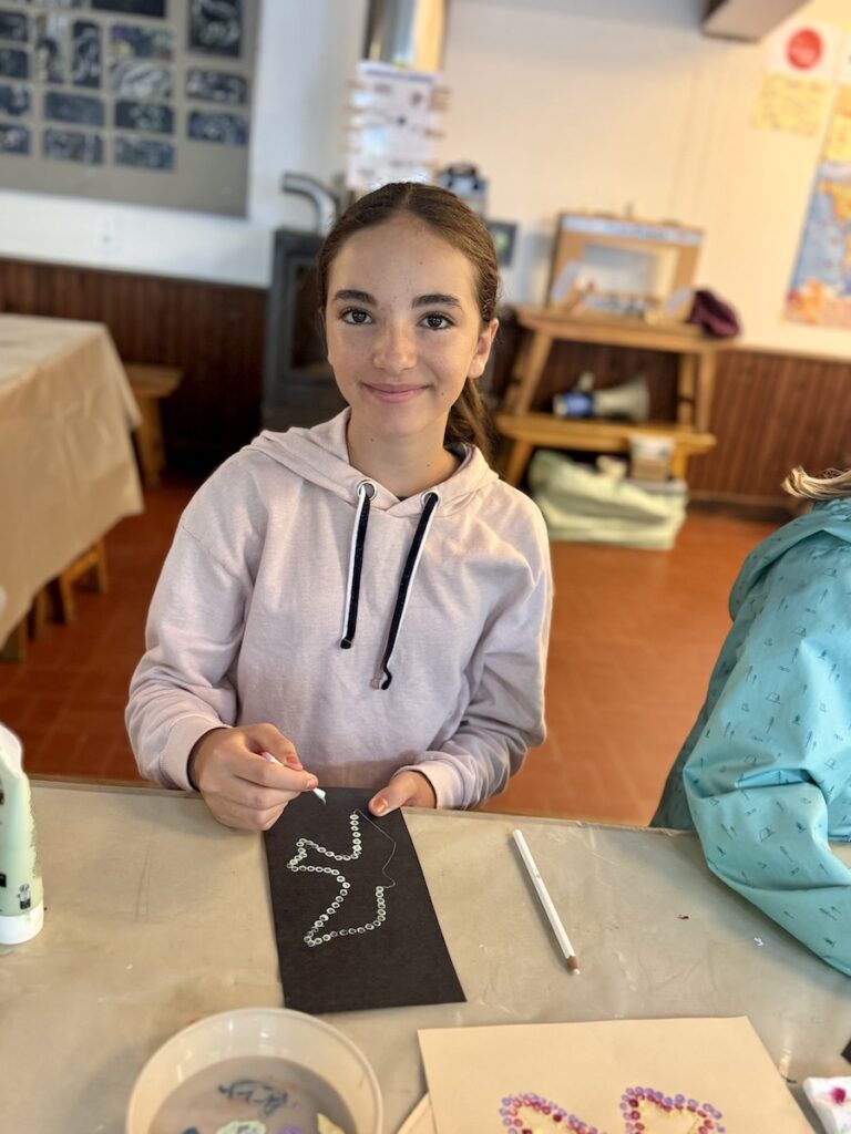 Wir sind aufgestanden. Danach zogen wir uns an. Später assen wir zu Morgen. Wir durften Geschichten hören und malen. Danach assen wir zu Mittag und nach dem Essen hatten wir Freizeit. Nach der Freizeit haben wir gebastelt und Sport gemacht. Zwischen den Aktivitäten haben wir gegessen. Dann hatten wir Freizeit. Dann assen wir zum Abendessen. Danach hatten wir Freizeit. Danach schauten wir einen Film. Zwischen dem Film gab es eine kurze Pause mit Essen (Glacé und Popcorn). Nach dem Film ging der schöne Tag zu Ende. (Enea, Lara)