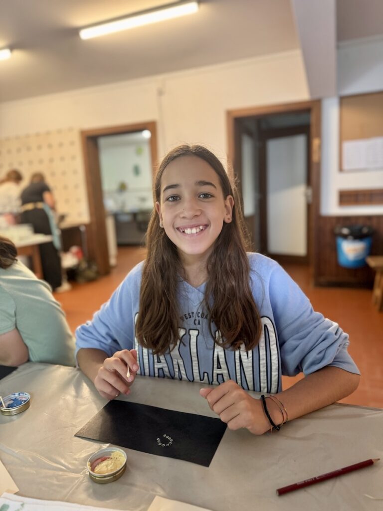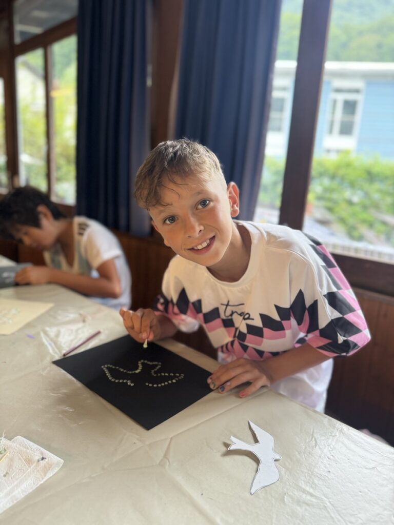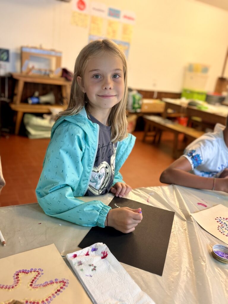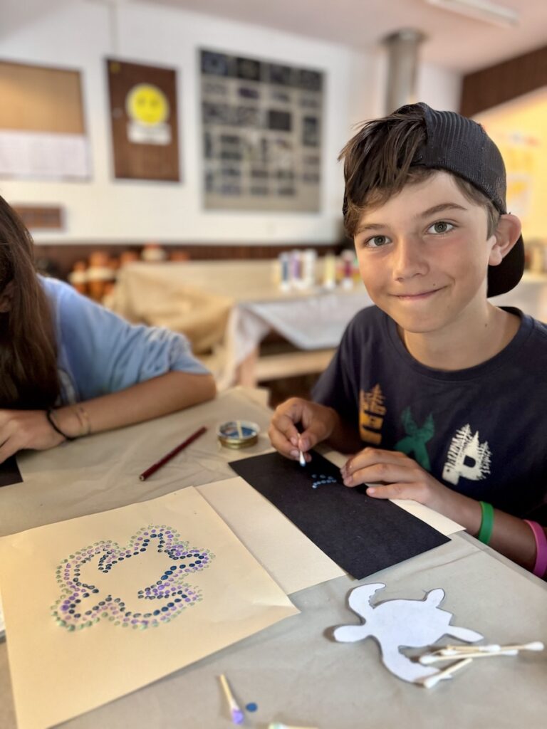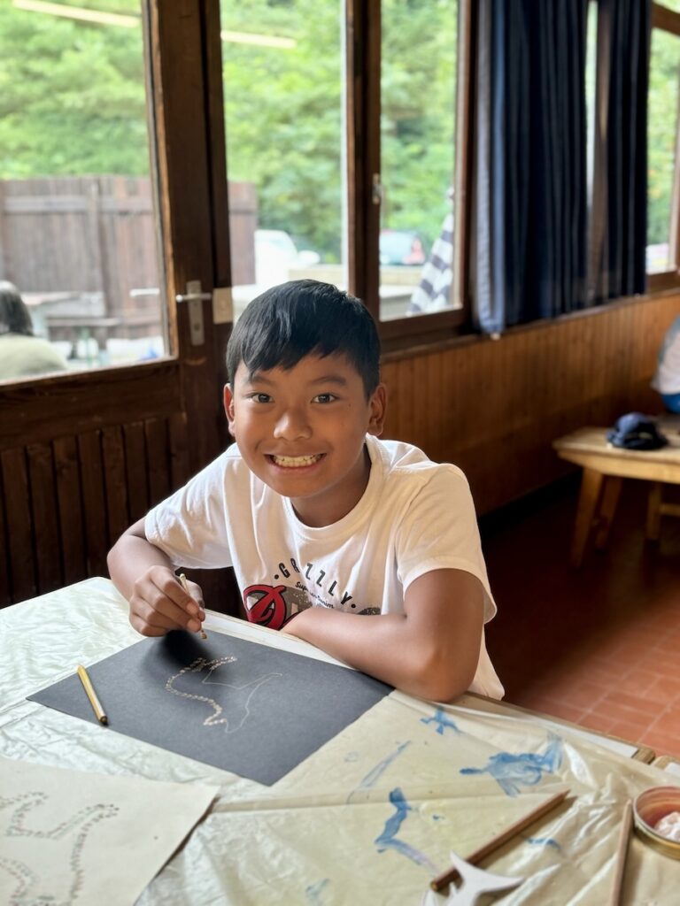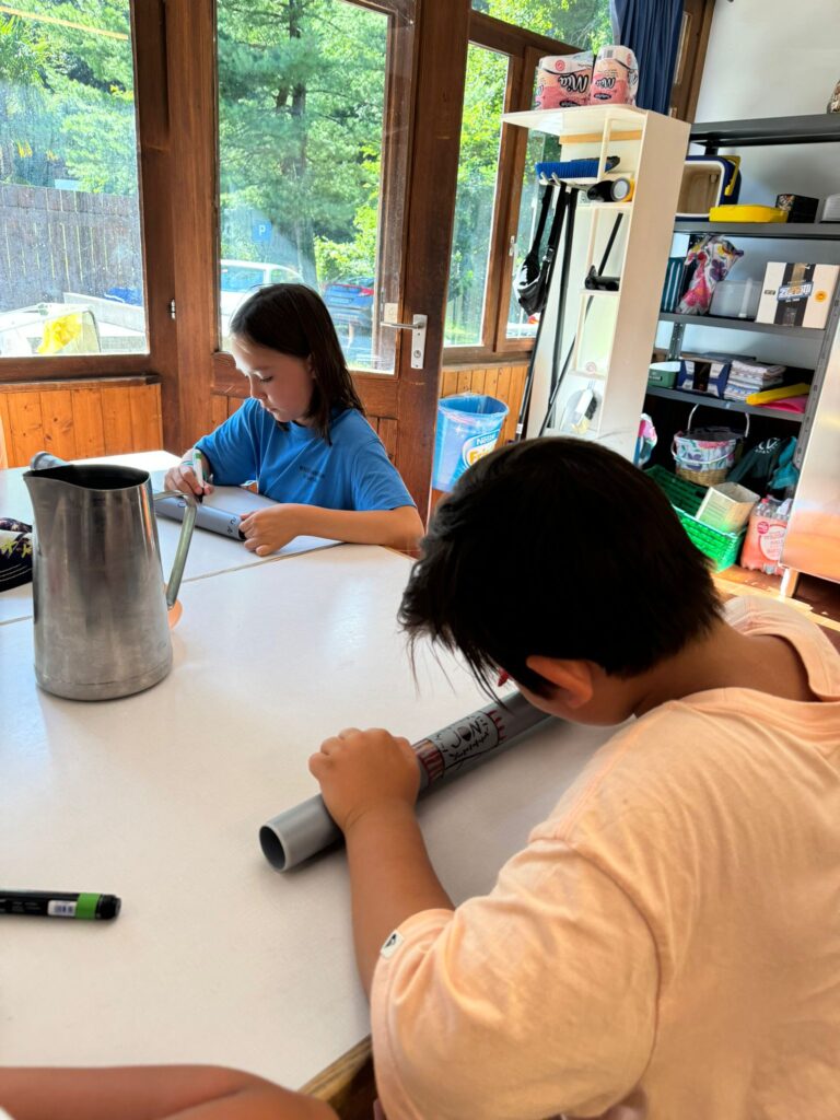 Wir sind aufgestanden. Danach zogen wir uns an. Später assen wir zu Morgen. Wir durften Geschichten hören und malen. Danach assen wir zu Mittag und nach dem Essen hatten wir Freizeit. Nach der Freizeit haben wir gebastelt und Sport gemacht. Zwischen den Aktivitäten haben wir gegessen. Dann hatten wir Freizeit. Dann assen wir zum Abendessen. Danach hatten wir Freizeit. Danach schauten wir einen Film. Zwischen dem Film gab es eine kurze Pause mit Essen (Glacé und Popcorn). Nach dem Film ging der schöne Tag zu Ende. (Enea, Lara)