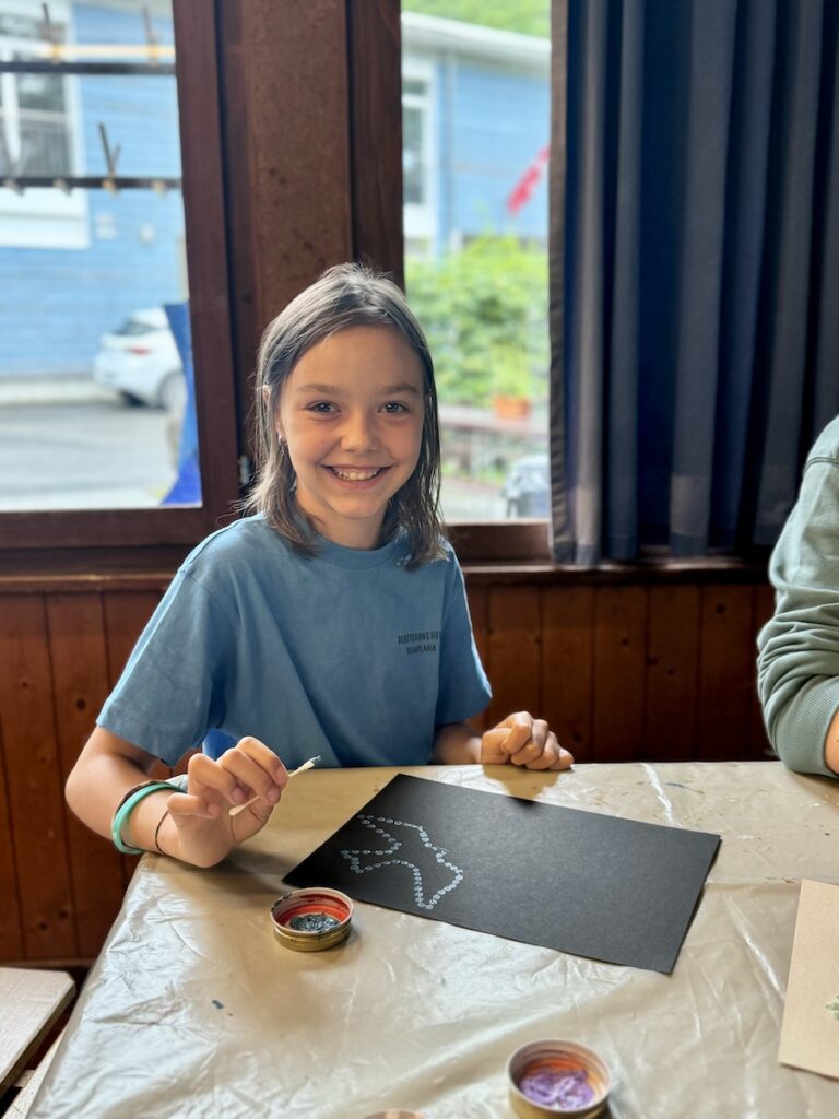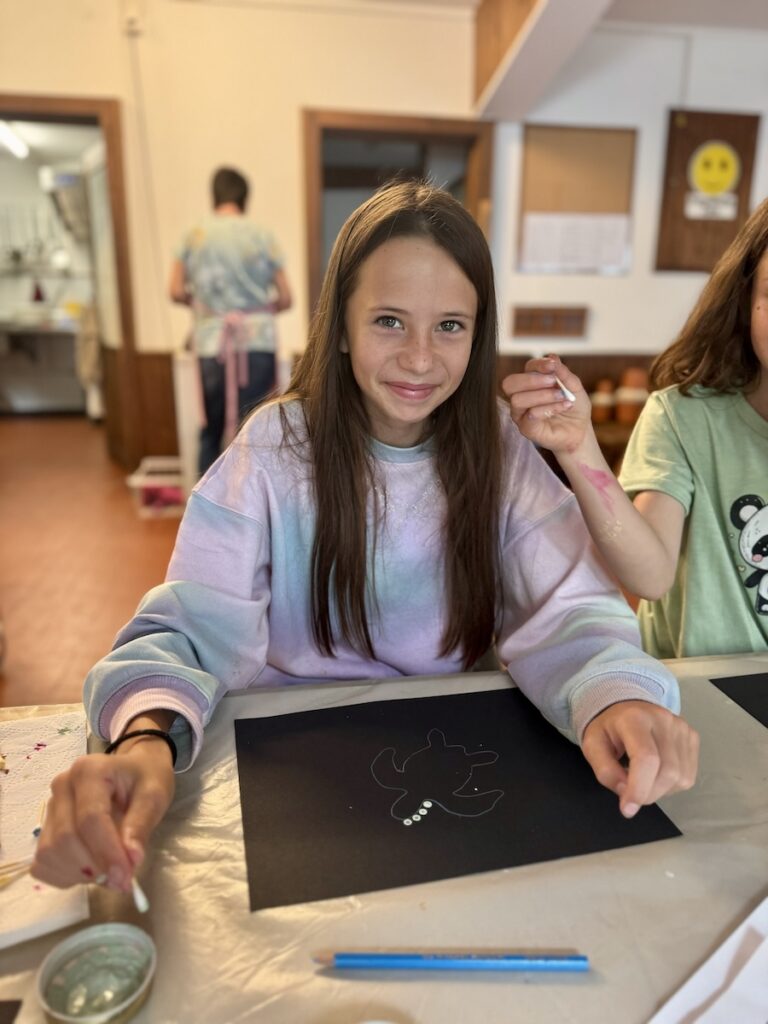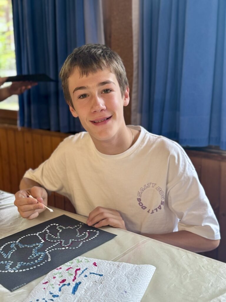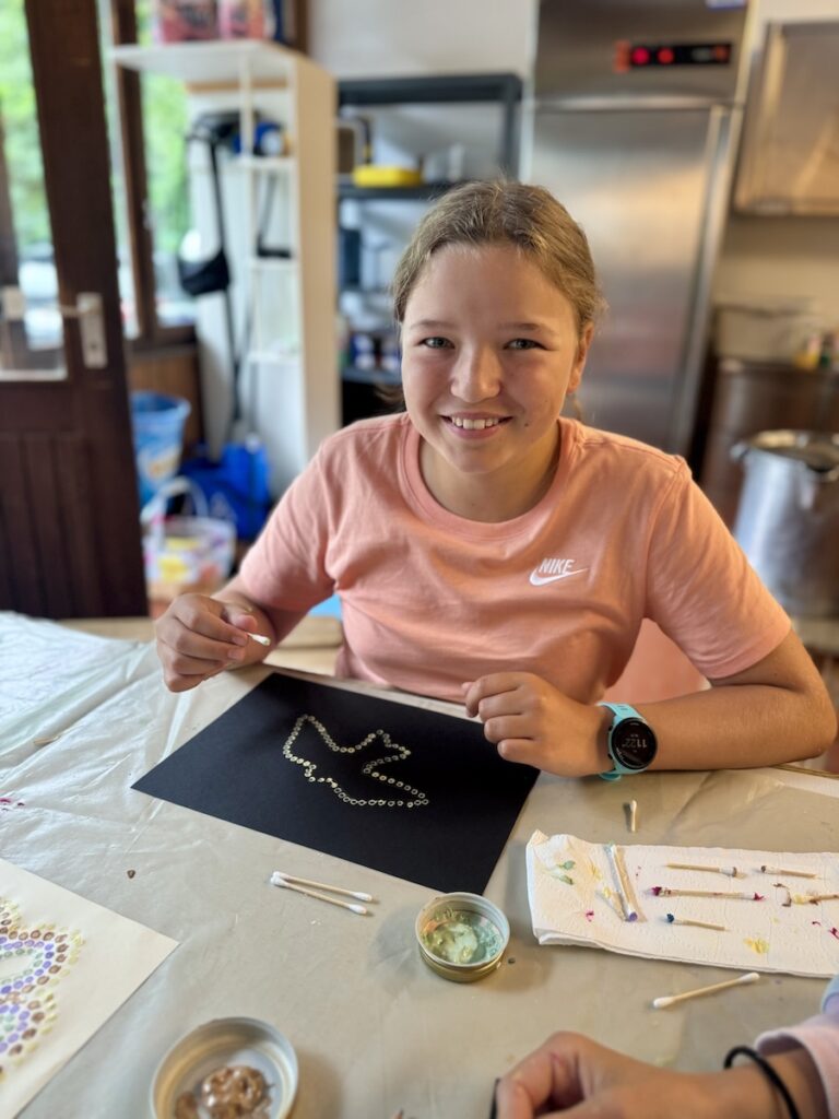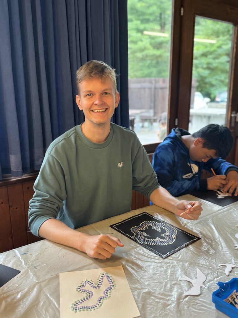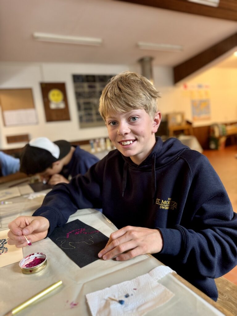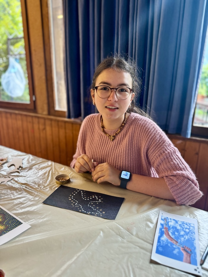 Wir sind aufgestanden. Danach zogen wir uns an. Später assen wir zu Morgen. Wir durften Geschichten hören und malen. Danach assen wir zu Mittag und nach dem Essen hatten wir Freizeit. Nach der Freizeit haben wir gebastelt und Sport gemacht. Zwischen den Aktivitäten haben wir gegessen. Dann hatten wir Freizeit. Dann assen wir zum Abendessen. Danach hatten wir Freizeit. Danach schauten wir einen Film. Zwischen dem Film gab es eine kurze Pause mit Essen (Glacé und Popcorn). Nach dem Film ging der schöne Tag zu Ende. (Enea, Lara)